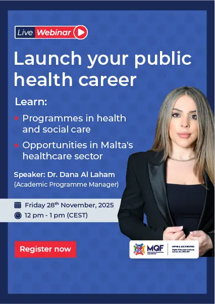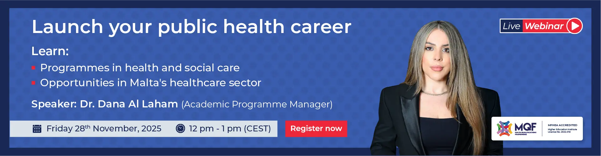 Are you ready to transform your passion for health into leadership that matters? Join us for an interactive session with Prof. Dana Al Laham, as we explore how the Public Health Leadership Programme at GBS Malta equips you with the skills, insights, and professional connections to make an impact in health policies and strategies.
